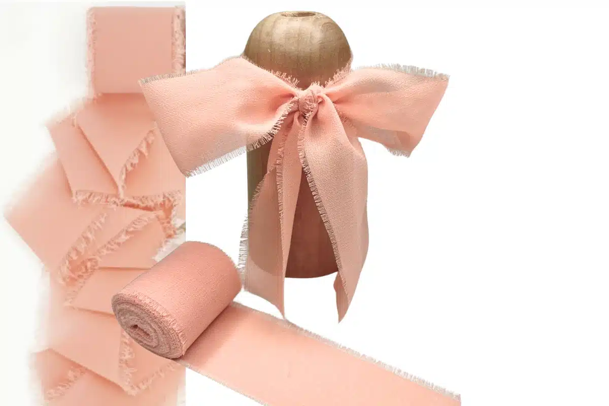 40mm Plain Peach Bud Frayed Edge Chiffon Ribbon 5 Meter