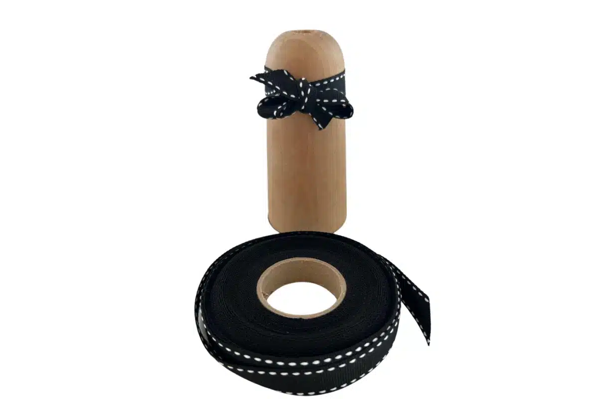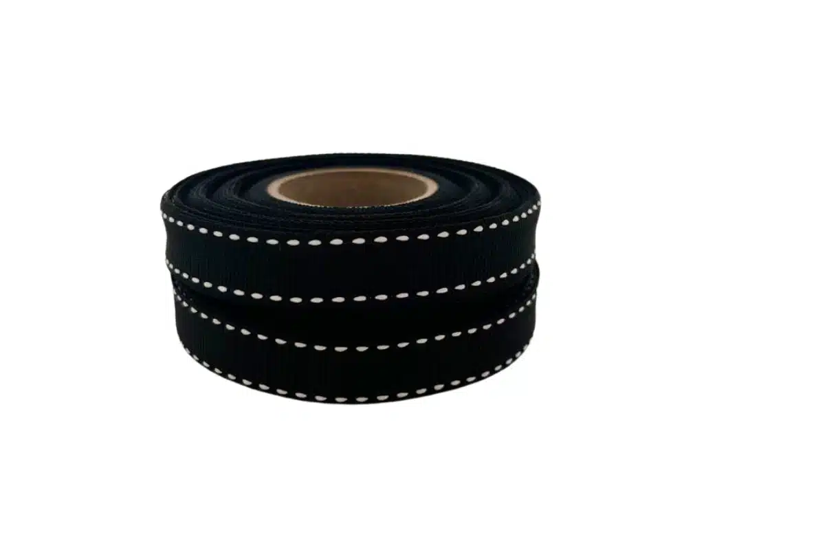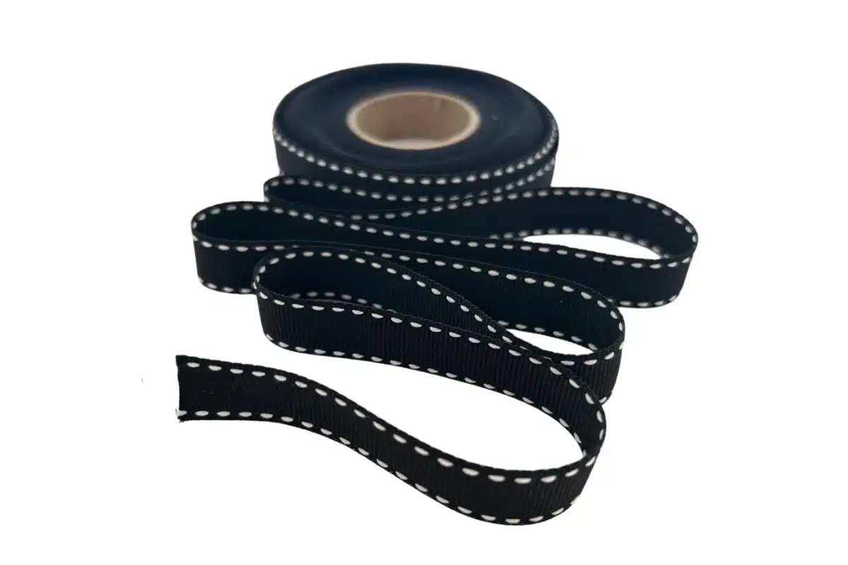 Black Petersham Ribbon with White Saddle Stitch 15mm for Bold Creations