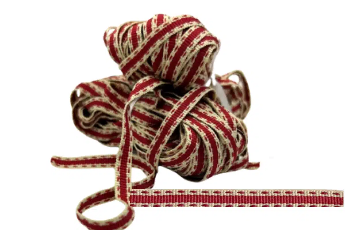 Cream and Maroon Striped Petersham Ribbon with Marsala Saddle Stitches 7mm for Elegant Creations