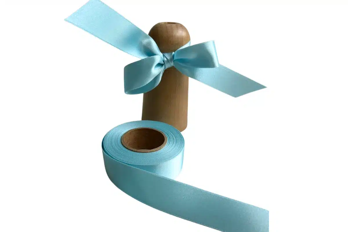 Fade-resistant light blue 25mm satin ribbon for lasting elegance