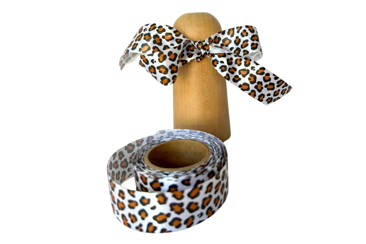 25mm Leopard Print Polyester Satin Ribbon for Wild Decor