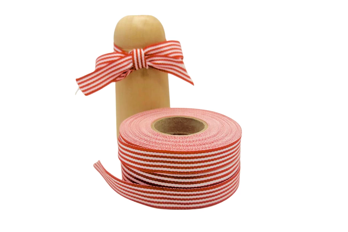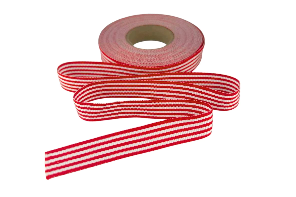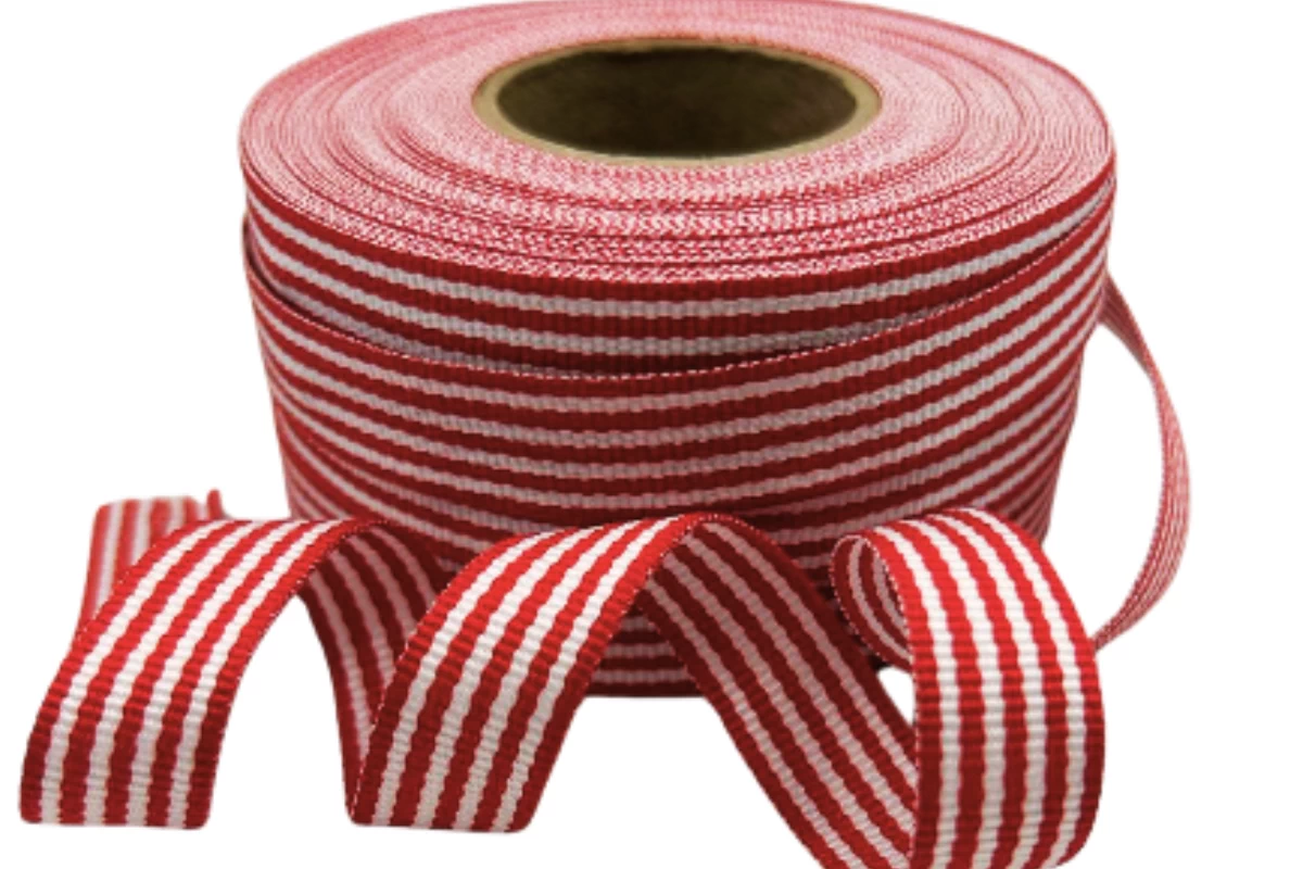 Red and White Striped Petersham Ribbon 25mm for Festive Creations